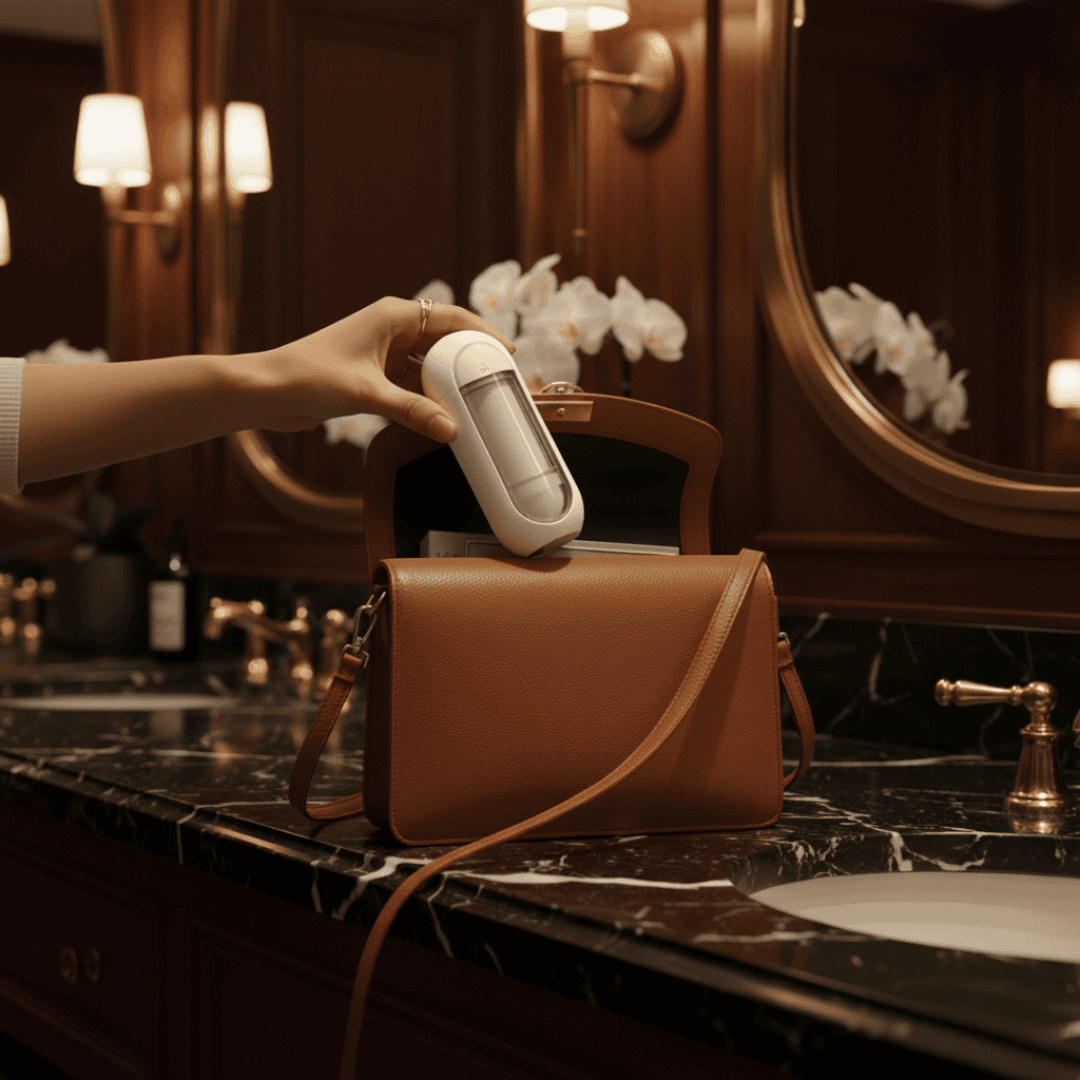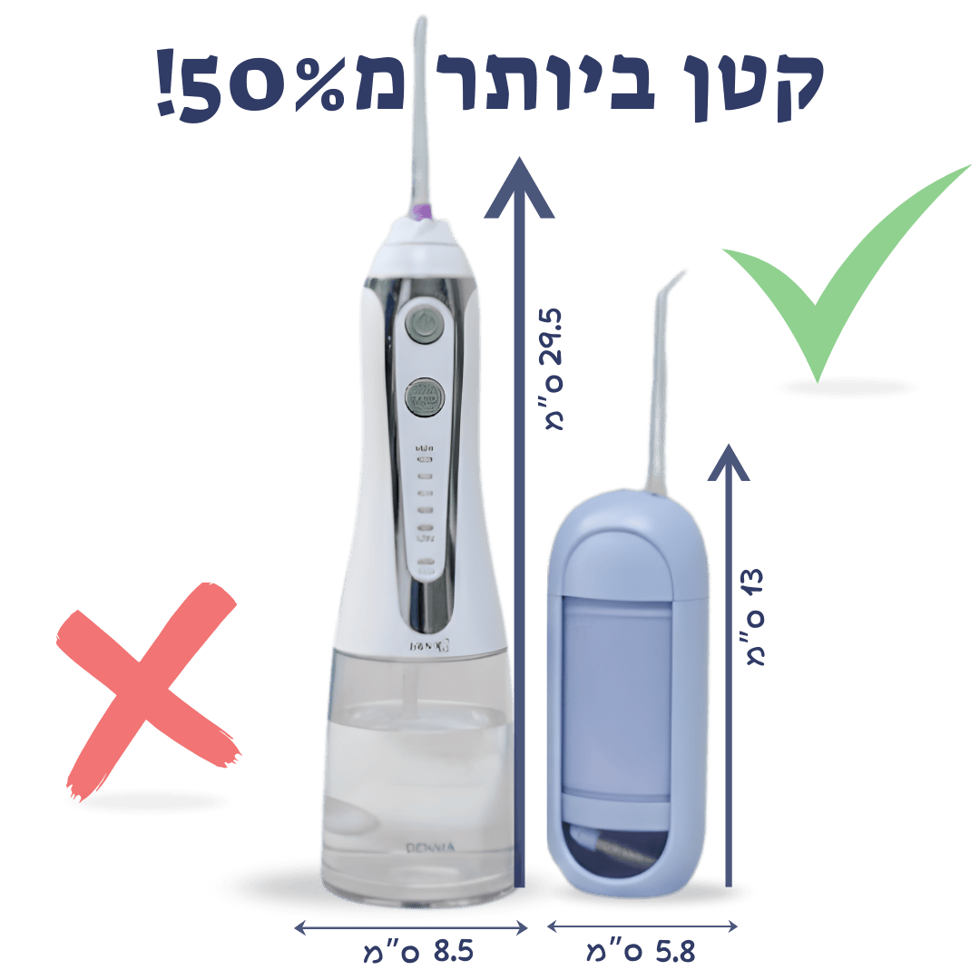 הסילון מים הדנטלי שלנו נייד וקומפקטי נכנס לכל תיק וזמין בכל מקום.