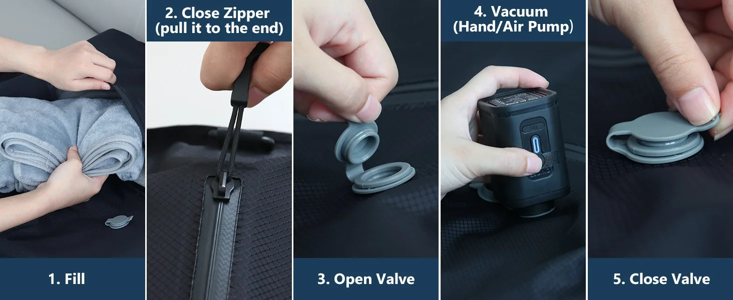 📌 תואם לשואב אבק – אטימה קלה ומהירה – עם שסתום ואקום מובנה, השקית מתחברת בקלות לרוב שואבי האבק, ומאפשרת הסרת אוויר מהירה ויעילה. לא עוד התמודדות עם מזוודות נפוחות – פשוט לדחוס, לאטום ולצאת לדרך!